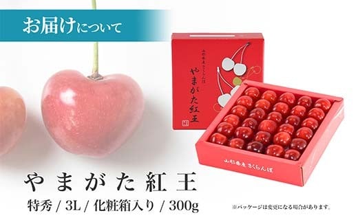 - さくらんぼ やまがた紅王 300g 3L玉 大粒 手詰めギフト 特秀 山形県産 化粧箱入り 【令和8年度 先行予約】 FSY-2265