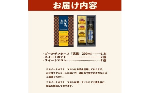 - ウイスキー スイートポテト コラボセット 羽生のスイーツ 武蔵 ゴールデンホース ウィスキー スイーツ マロン 栗 お菓子 ギフト プレゼント 人気 美味しい 洋菓子 酒 ウィンズアーク 東亜酒造 埼玉県 羽生市