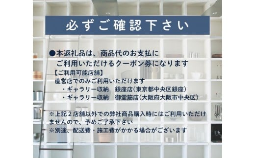 - ギャラリー収納(銀座店・御堂筋店)にて使えるクーポン 30万円分