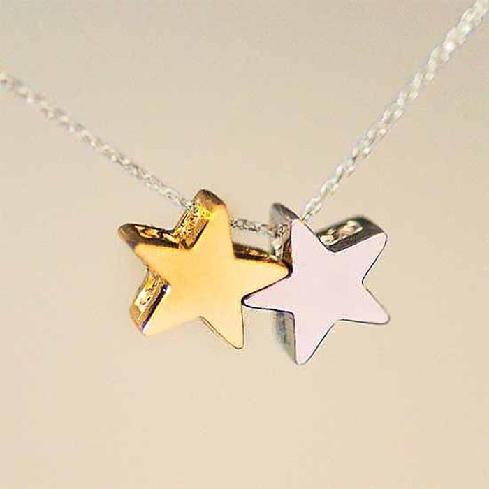 ブランツ ふたつ星の立体ペンダントK18 プラチナ コンビ | ペンダント 星 鏡面 高級 貴金属 18金 イエローゴールド プレゼント 記念日 誕生日 クリスマス 喜ばれる 五芒星 アクセサリー ネックレス ワンポイント 星空 宙ジュエリー ペンダント メテオ star スター 首飾り 天体 夜空