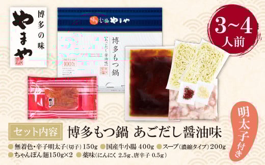 - W82-62 やまや 明太子付き・博多もつ鍋(あごだし醤油味)3~4人前