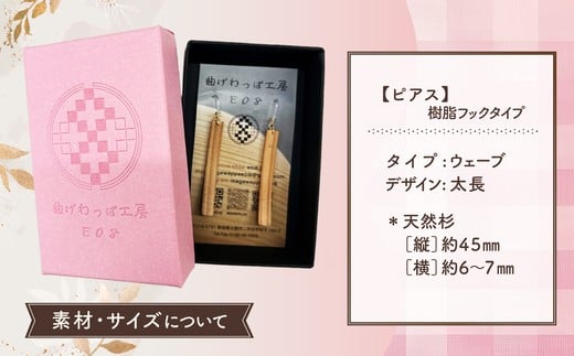 テレビで紹介された女性の伝統工芸士が作りました!【曲げわっぱアクセサリー】ウェーブタイプタイプ(太長デザイン)ピアス樹脂フックタイプ 65P6013 / 東北 秋田 大館 曲げわっぱ まげわっぱ マゲワッパ イヤリング ピアス アクセサリー 木製品 天然杉 工芸品 伝統的工芸品 伝統工芸品 木製 木製品 日本製 秋田杉 木 軽量 職人 贈り物 贈答品 ギフト プレゼント 記念日 誕生日