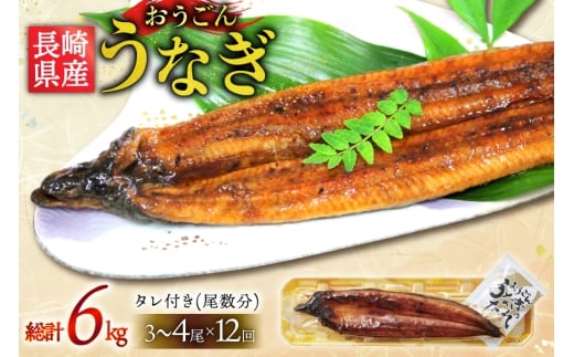- うなぎ 国産 蒲焼 長崎県産 おうごんうなぎ 約500g 3尾~4尾 12回 定期便 総計 約6kg [松永水産 長崎県 平戸市 hr42bgy400054] 鰻 うな重 うな丼 ひつまぶし 蒲焼き かばやき タレ付き 養殖 国内産 冷凍 unagi