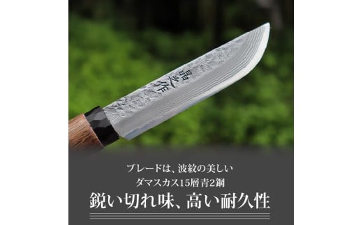 - 土佐渓流ナイフ105 黒丸輪 槌目磨 ダマスカス15層青紙2号鋼 | ナイフ キャンプ アウトドア 打刃物 土佐 鉈 剣鉈 なた 職人 山林 狩猟 熊 刃物 薪割り ハンドメイド 釣り 伝統 工芸 高知県 南国市