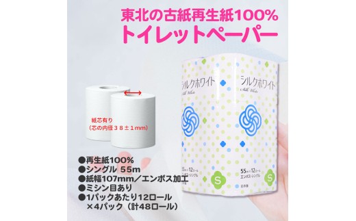 - 《11月~順次発送》再生紙 トイレットペーパー(55m)シングル 48個「シルクホワイト」無香料 「はなのもりティッシュ」 15箱 セット 送料無料 大容量 日用品 まとめ買い 日用雑貨 紙 消耗品 生活必需品 物価高騰対策 防災 備蓄 生活雑貨 SDGs