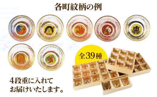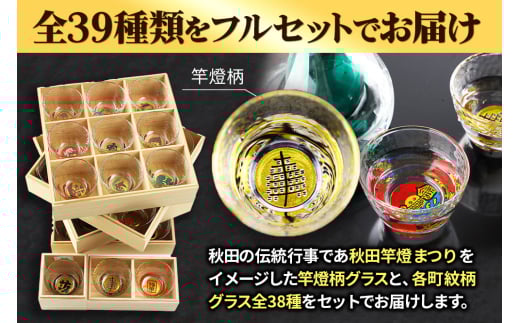 - 川連蒔絵ガラスぐい呑み 竿燈町紋フルセット【竿燈柄×1柄・全町紋柄×38柄】