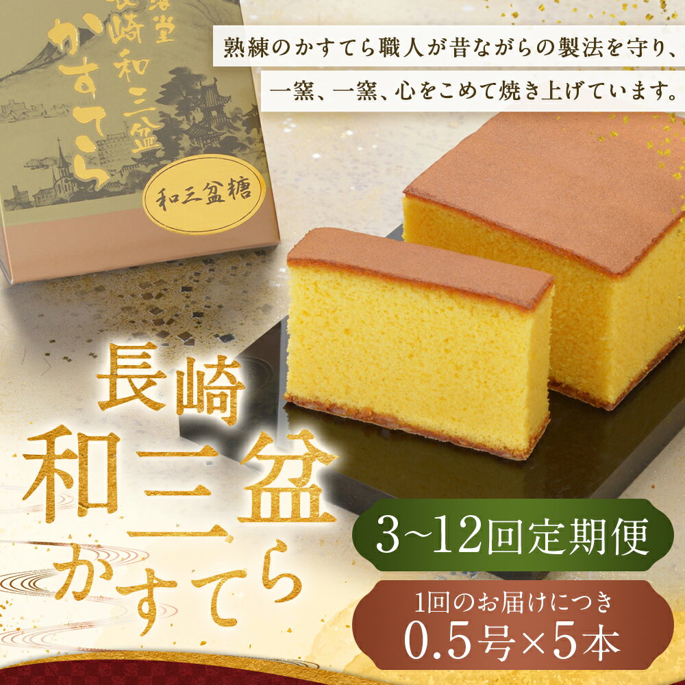 - 【ふるさと納税】定期便 《和三盆糖を使用》職人が手焼きした長崎カステラ 0.5号 (290g) × 5本 選べる回数 ( 3回 / 6回 / 12回 ) | 琴海堂 カットなし カステラ かすてら ザラメ スイーツ お菓子 和菓子 お取り寄せ 長崎県 長崎市 送料無料