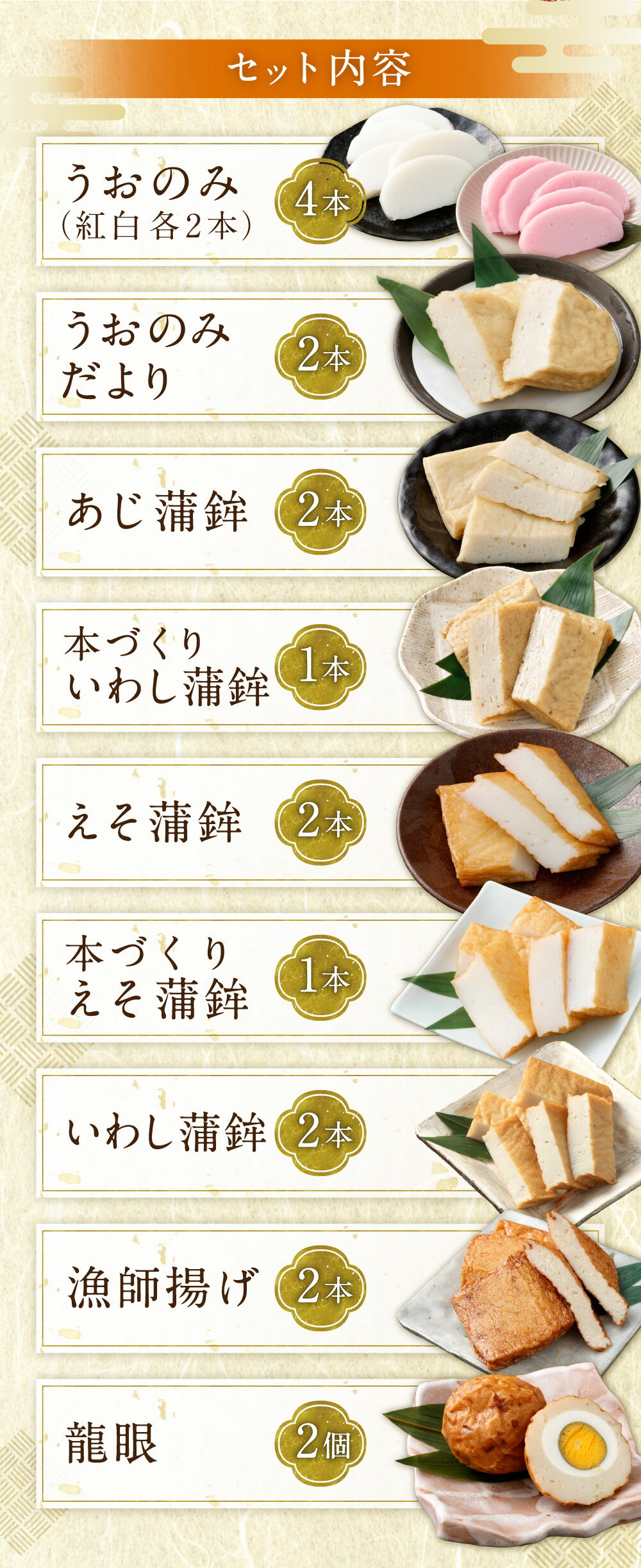 - 【ふるさと納税】大満足!贅沢長崎かんぼこセット | うおのみ(紅白) うおのみだより あじ蒲鉾 本づくりいわし蒲鉾 えそ蒲鉾 本づくりえそ蒲鉾 いわし蒲鉾 漁師揚げ 龍眼 カマボコ 詰め合わせ 冷蔵 長崎市 送料無料
