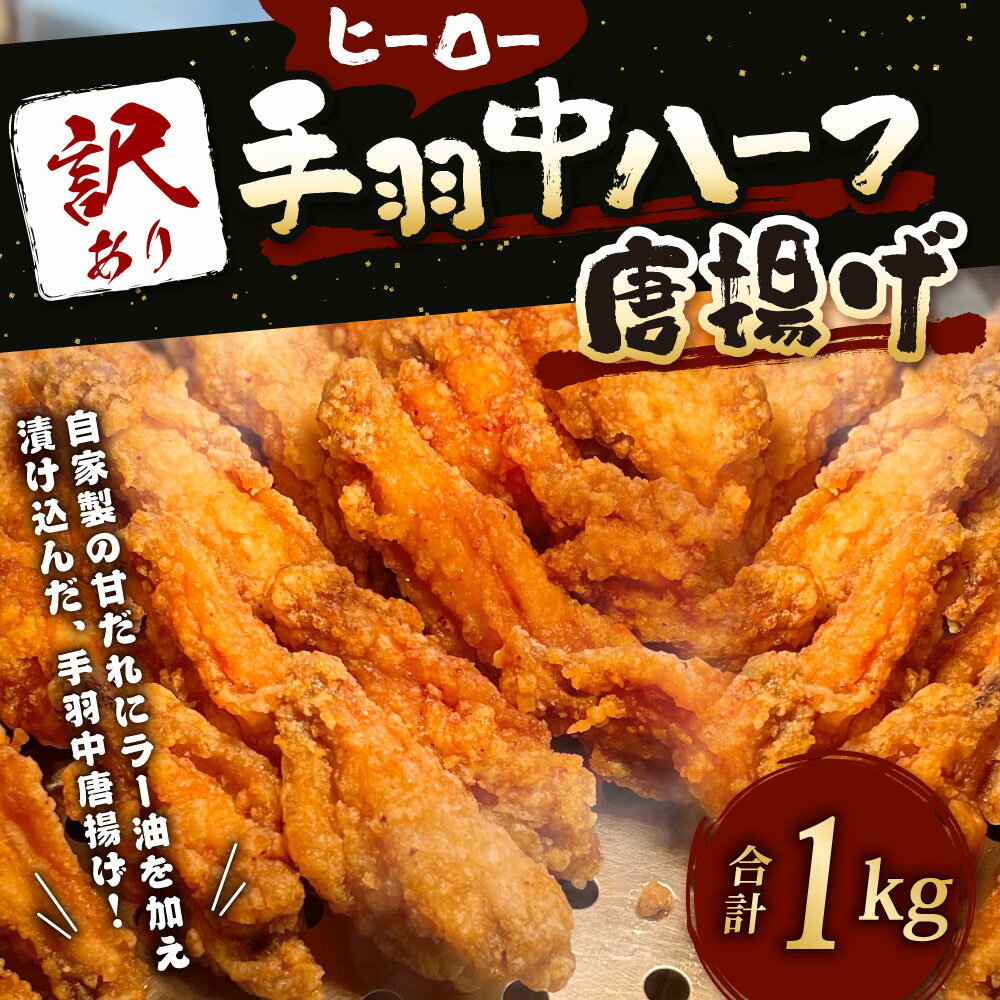 【ふるさと納税】【訳あり】ヒーロー ( 手羽中ハーフ ) 唐揚げ 1kg 1パック 鶏肉 手羽中 鶏手羽 からあげ お肉 おかず 惣菜 自家製 甘だれ 簡易包装 冷凍 福岡県北九州市