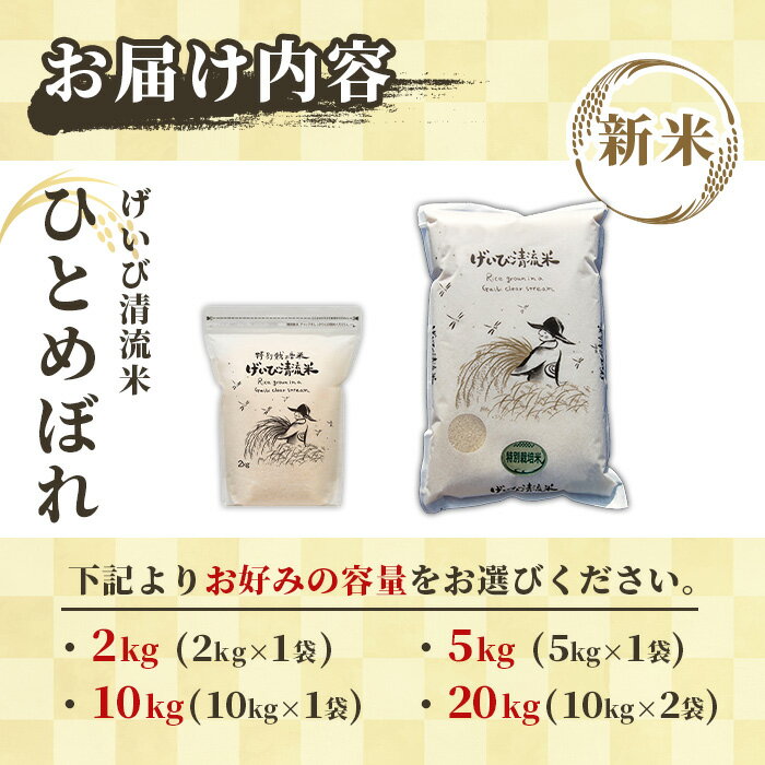 - 【ふるさと納税】新米 令和7年産 特別栽培米 ひとめぼれ げいび清流米 2kg〜20kg 選べる容量 岩手 お米 いわて コメ 精米 ブランド米 ご飯 白飯 ごはん お弁当 おにぎり 袋 東北 国産 送料無料 岩手県 一関市 【田舎モノ】ichinoseki01637・00040・01875・02049