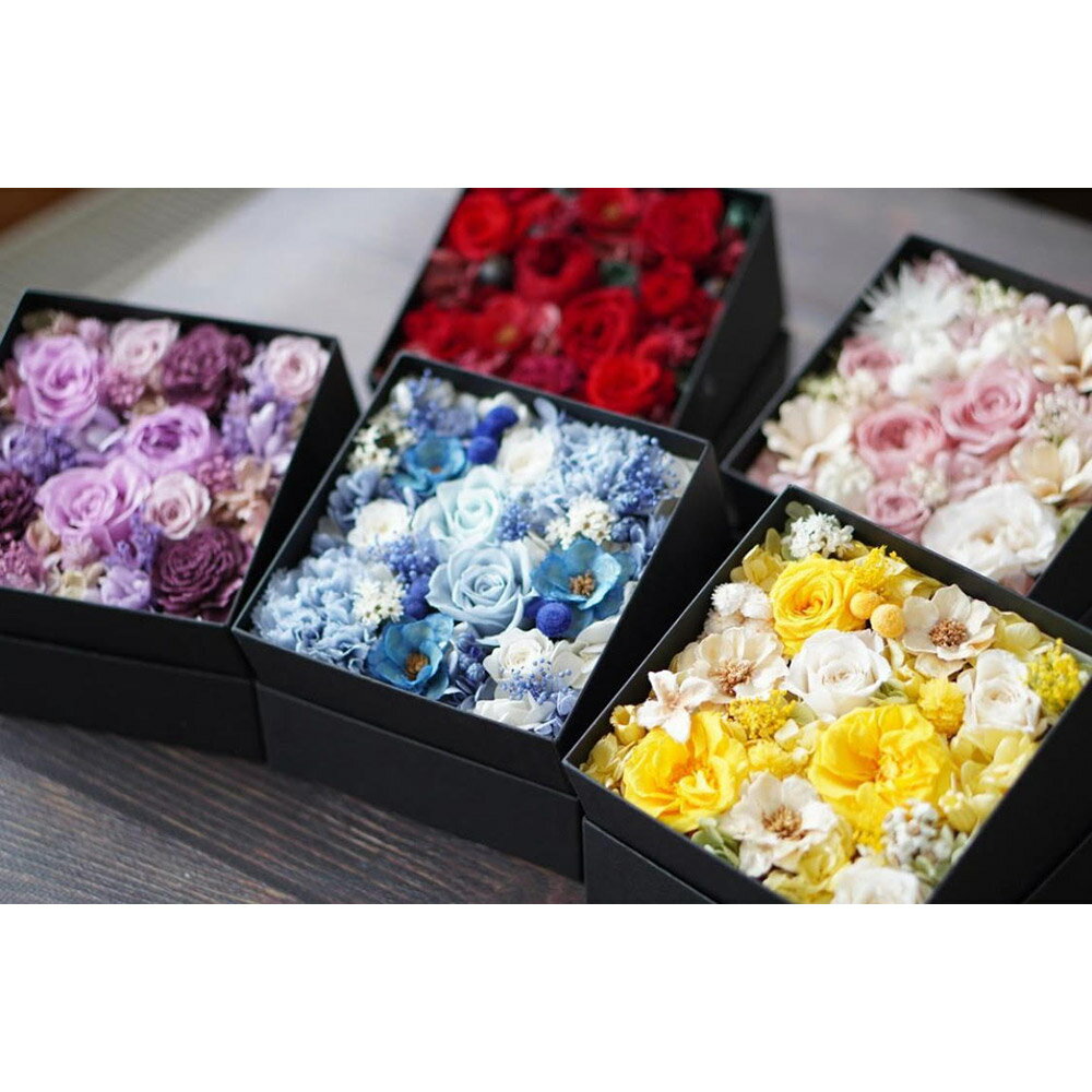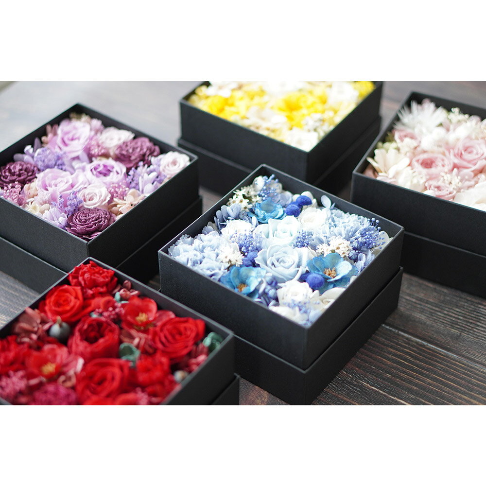 プリザーブドフラワー アレンジ ホワイトウッドフレーム ケース付き パープル インテリア 花
