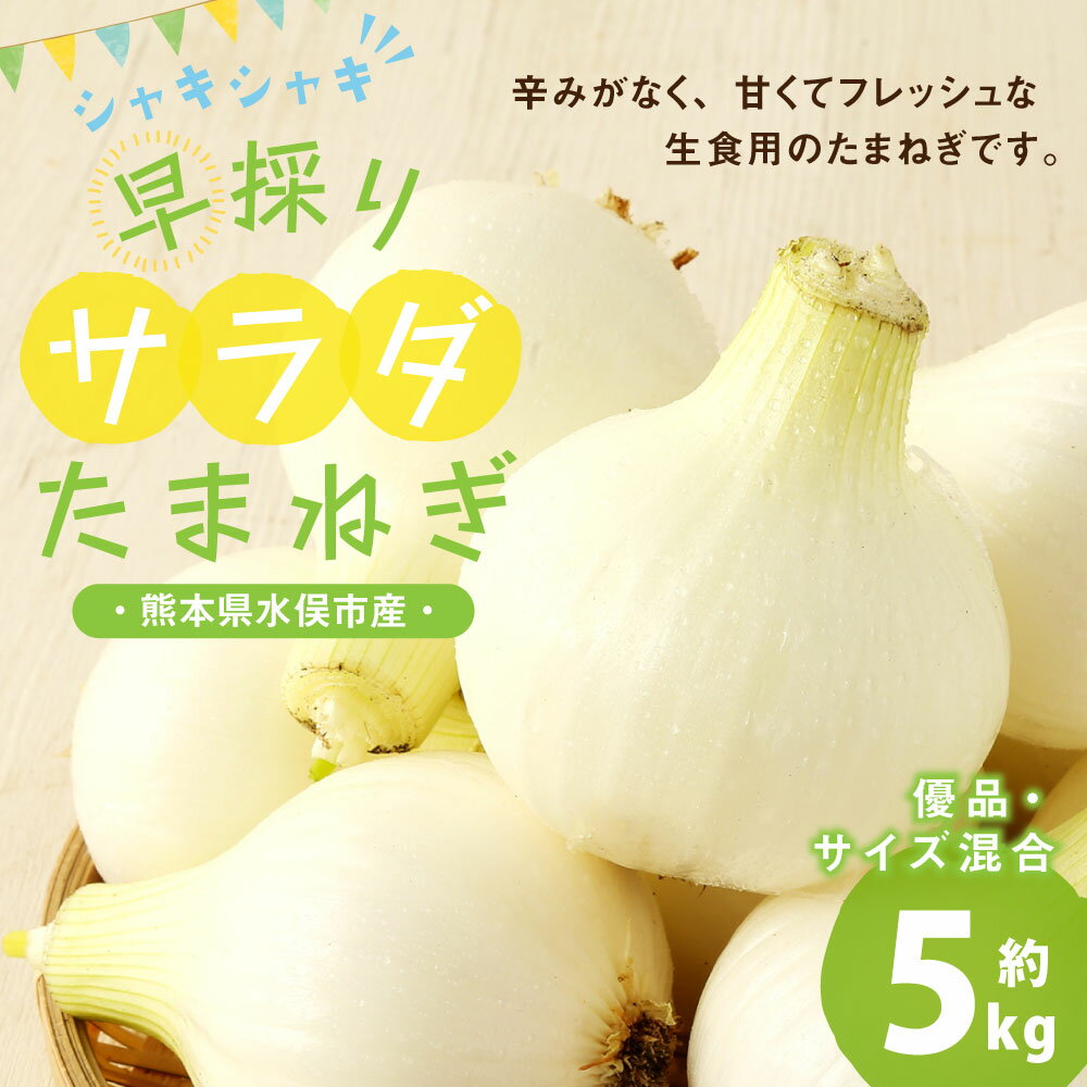 - 【ふるさと納税】1年に1度だけ!甘くて柔らかい!早採りサラダ玉ねぎ 約5kg 優品 サイズ混合 M~2Lサイズ 玉ねぎ タマネギ 玉葱 サラたま 春 新たまねぎ 国産 熊本県 水俣市産 送料無料 <栽培期間中農薬不使用/熊本県水俣市産/耕人舎>【2026年3月下旬-4月下旬順次発送予定】