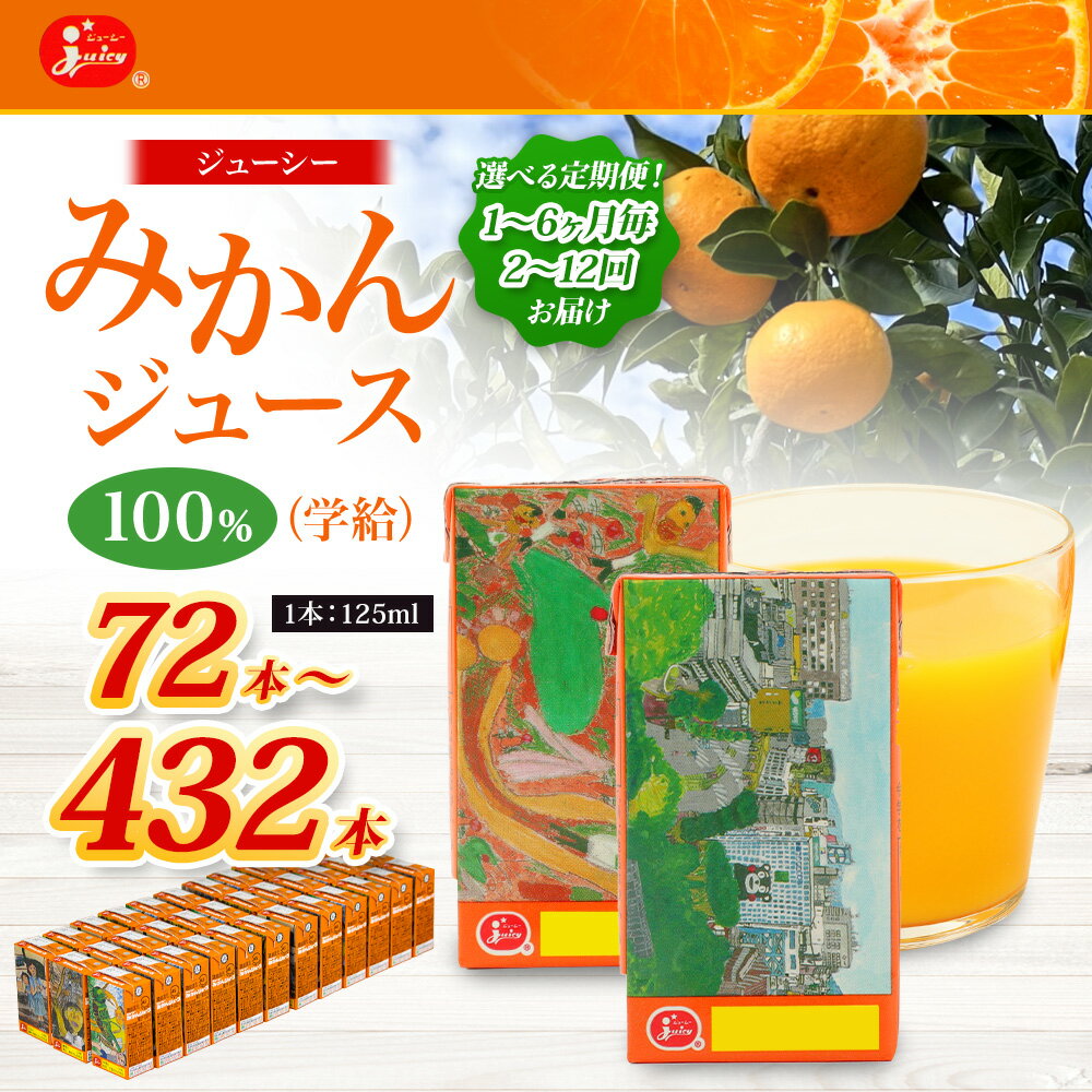 【ふるさと納税】 <選べる 定期便> ジューシー みかんジュース 100% (学給) 1ヶ月毎~6ヶ月毎 2回~12回 選べる 1回のお届けにつき 125ml×36本 5000ml 5L オレンジジュース 蜜柑ジュース 飲料 果実飲料 紙パック 国産 熊本県 熊本市 送料無料