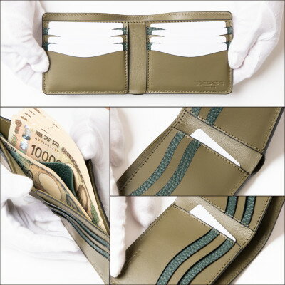 - 【ふるさと納税】HEDGE たつの市産牛革で仕立てた、ダークグリーンの二つ折り財布[ダブルカードタイプ]【1677820】