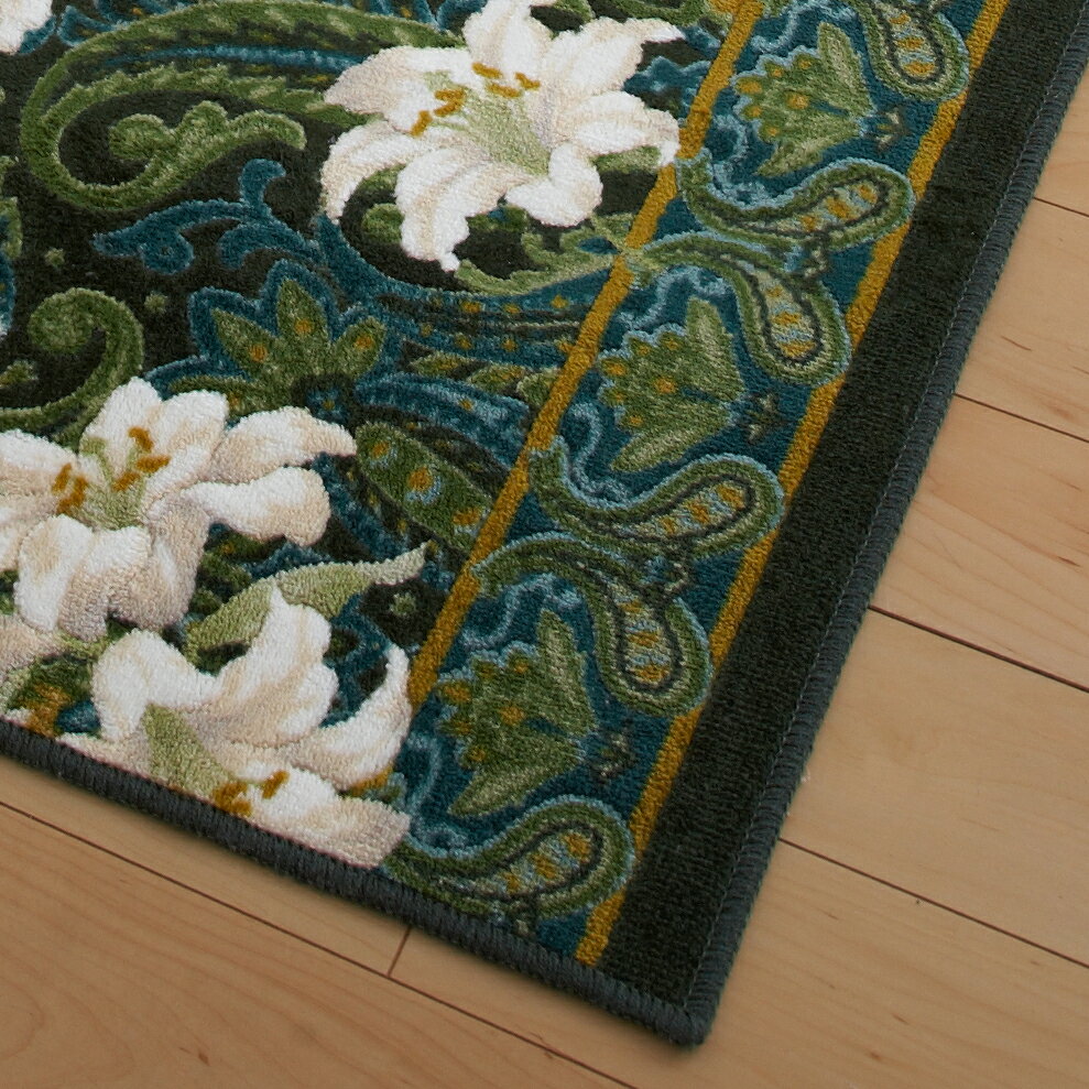 - 【ふるさと納税】日本製 廊下カーペット 80cm×180cm 【ユリ柄】滑り止め加工(グリーン・エンジ・ブラウン)【G1264359】