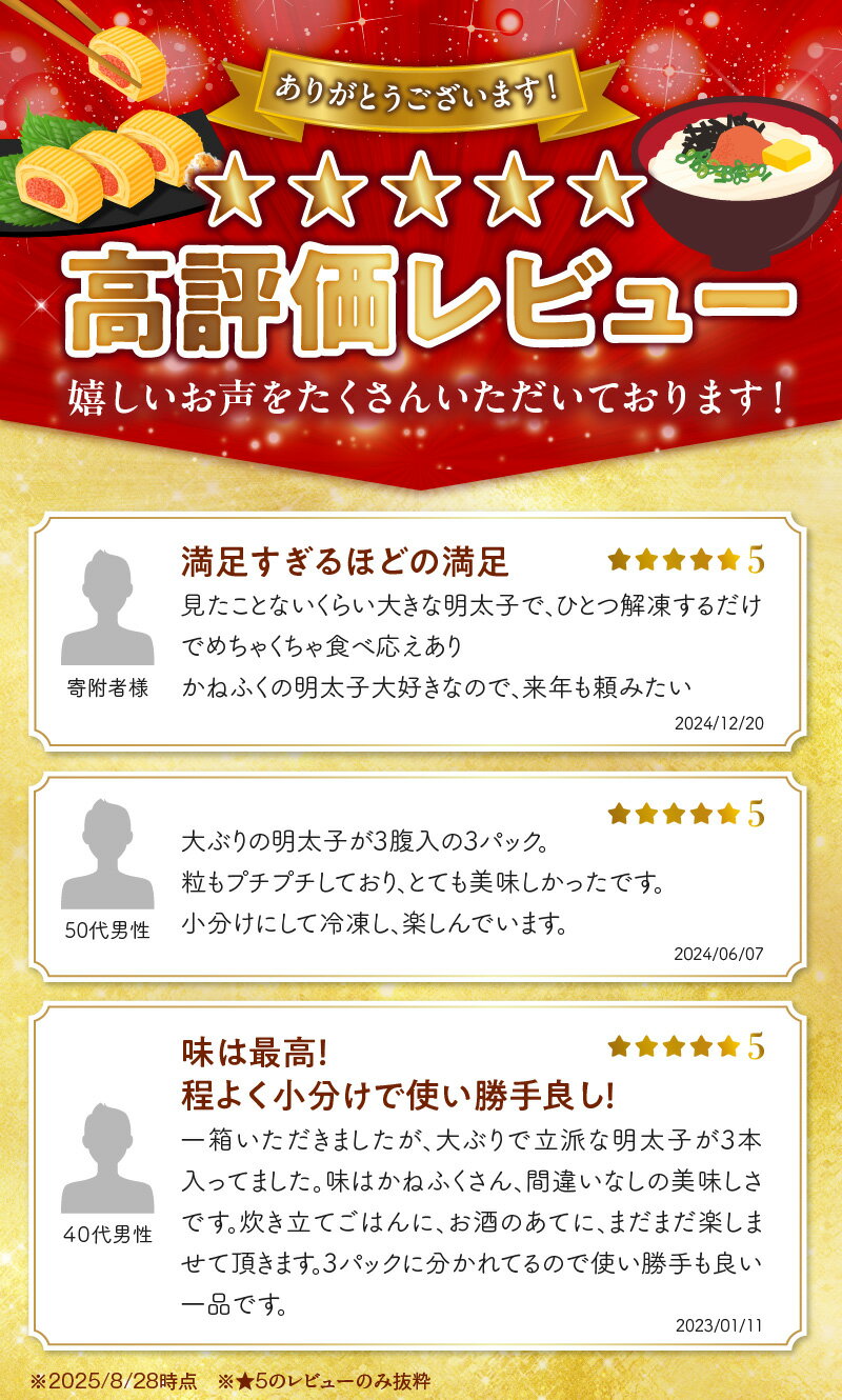 - 【ふるさと納税】かねふく 高評価 辛子明太子 300g × 3個 セット 一本物 無着色 贈答用 ご家庭用 塩漬け こだわり 粒立ち 明太子 明太 辛子 抑えた 味 食べやすい アレンジ パスタ おにぎり 茶漬け ビビンバ おかず おつまみ 冷凍 グルメ 福岡県 上毛町 お取り寄せ 送料無料