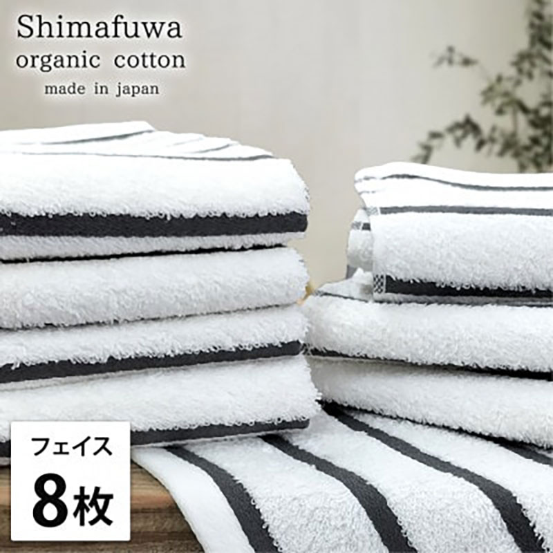 【ふるさと納税】フェイスタオル 8枚 セット オーガニックコットン しまふわ GY グレー フェイス タオル 綿 オーガニックコットンタオル 綿100% 綿100 オーガニック コットン 中厚手 日用品 大阪 大阪府 岸和田市 お届け:お申し込み後、3週間程度で順次発送予定
