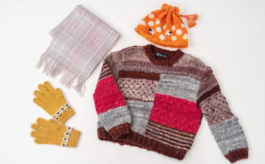 - 【北海道士別市】士別産羊毛サフォーク手つむぎニット4点セット【セーター,マフラー,手袋,帽子各1点】