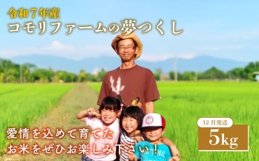 - 12月発送 コモリファームの夢つくし 5kg 令和7年産 夢つくし コモリファーム 12月 精米 お米 白米 ブランド 米 数量限定 限定 国産 福岡県産米 福岡県産 長期保存 備蓄 備蓄米 防災 ご飯 飯 コメ 朝食 夕ご飯 福岡 川崎町