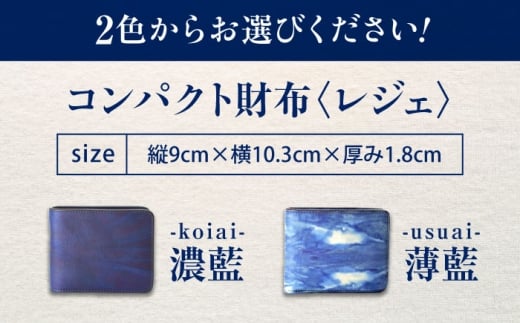 - コンパクト財布 「レジェ」 濃藍 瀬戸内の空 天然藍染め・福山レザー 自社一貫製造 広島県福山市/株式会社サード メンズ レディース 本革 レザー [BACM023]