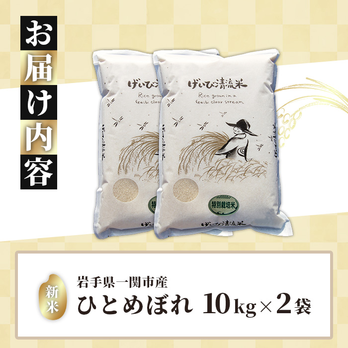 - ≪ 令和7年産 新米 ≫ 特別栽培 ひとめぼれ 20kg(10kg×2袋) 清流が育んだお米 げいび清流米 岩手県産
