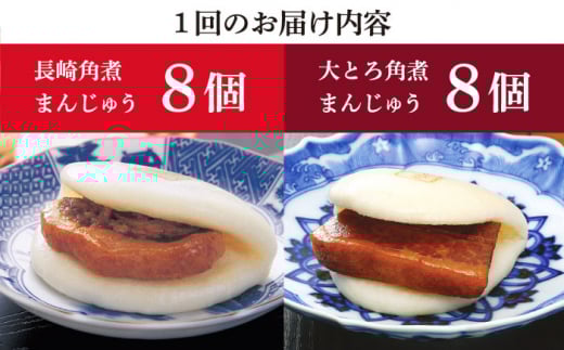 - 【全12回定期便】 長崎 角煮まんじゅう 8個(箱)・ 大とろ角煮まんじゅう 8個(箱)<岩崎本舗> [DBG030] 角煮まん 角煮 豚角煮 簡単 惣菜 冷凍 おやつ 中華