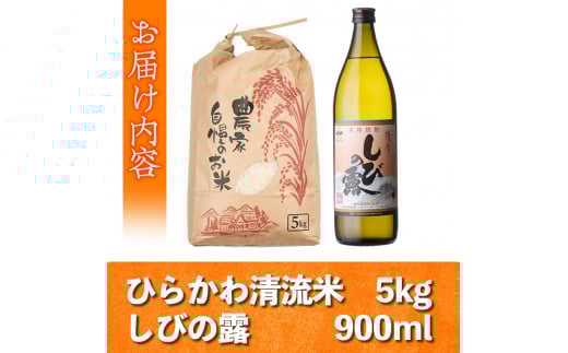 - s513 ひらかわ 清流米・焼酎セット(清流米 5kg・しびの露 900ml×1本) 米 焼酎 軸屋酒造 鹿児島 国産 九州産 白米 精米 お米 こめ コメ ごはん ご飯 芋焼酎 アルコール お酒 セット【ひらかわ屋】