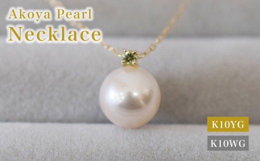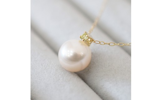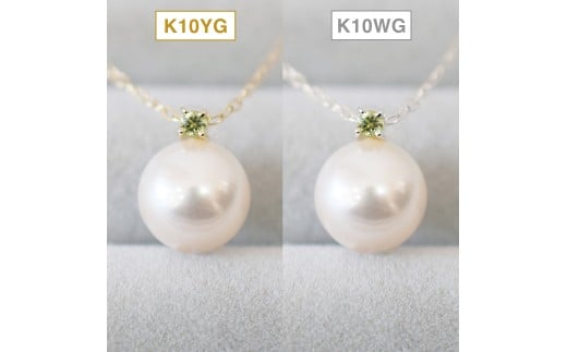 S085-556_あこや真珠 ペンダント ネックレス K10 8mm - 8.5mm 天草 熊本 ホワイトピンク 誕生石 8月 ペリドット 半貴石 本真珠