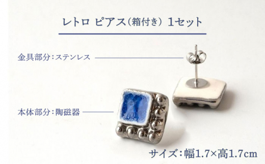 【美濃焼】 レトロ ピアス コバルト×銀 【七窯社】 [TAP062]