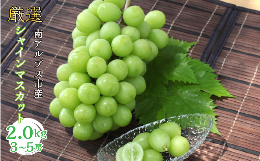 - <2026年発送先行予約>厳選! シャインマスカット 2.0kg 3~5房 山梨県南アルプス市産 ALPBV007