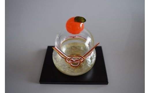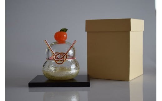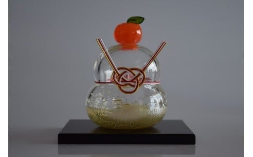 ガラスの鏡餅(黒台付き)銀箔使用<Mサイズ>【鏡餅 吹きガラス工房 ガラス お正月 鏡餅約10m×約8cm 黒台12cm×9cm ハンドメイド 職人手作り 工芸品 伝統工房で作成 老舗ガラス工房 神奈川県 小田原市 】