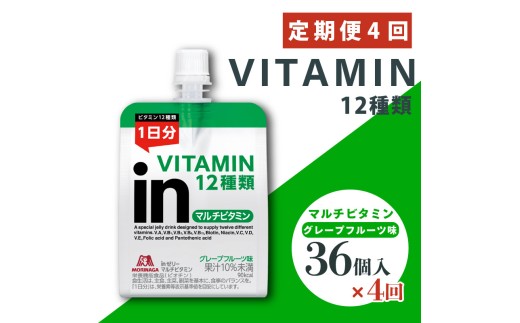 - 定期便 4回 inゼリー マルチビタミン 36個入り グレープフルーツ 味 インゼリー ゼリー飲料 ゼリー まとめ買い 森永製菓 森永 栄養補給 ビタミン 12種類 1日分 10秒チャージ スポーツ アスリート 遠征 飲むゼリー 間食 小腹 栄養補助食品 補助食品 非常食 杉山 180g×36個 エネルギー補給 常温保存 三島市 静岡県