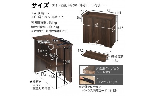 【完成品でお届け】ルーターボックス〔大・右置タイプ〕(ウォールナット×ブラック)ケーブルボックス コードケース 木製 配線隠し コンセント 付き ケース ルーター サイドテーブル ソファテーブル EKANTC001540-1R-WAL