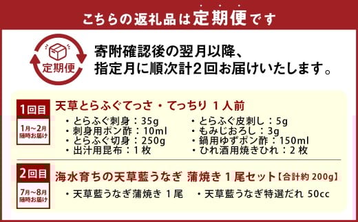 - 【2回定期便】【極】季節めぐり定期便1 ふぐ フグ 河豚 とらふぐ トラフグ てっさ てっちり うなぎ ウナギ 鰻 熊本県 上天草市