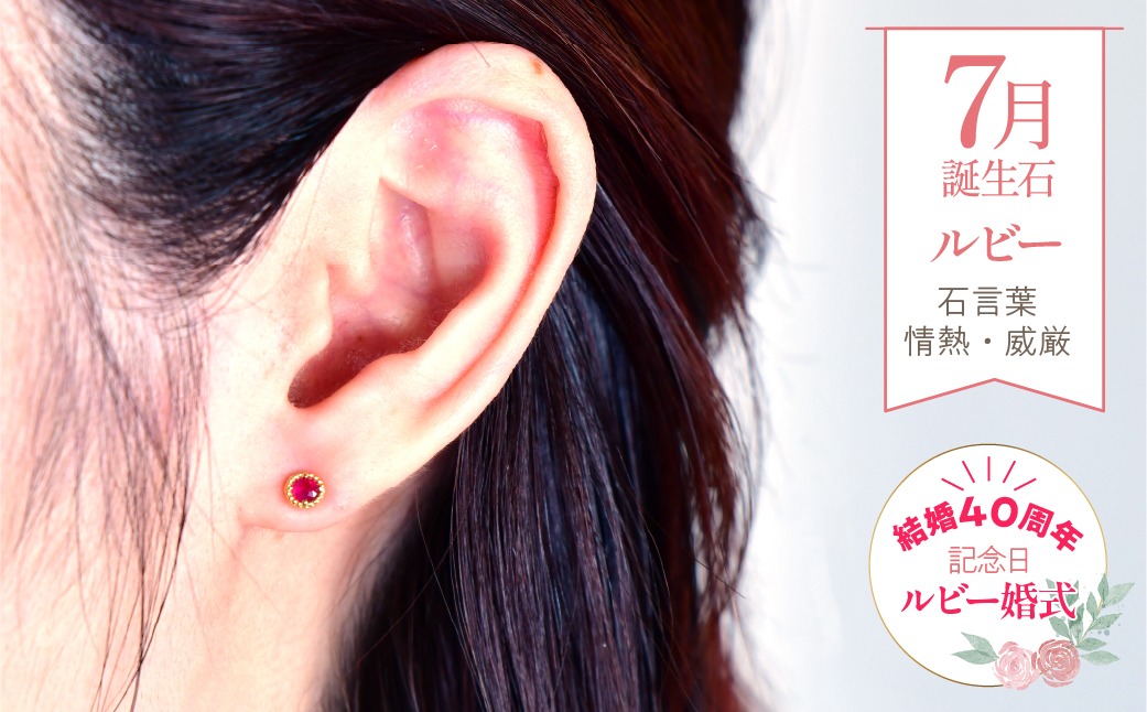 K18イエローゴールド アンティークデザイン ルビー ピアス 管理番号686643 218-138-RB