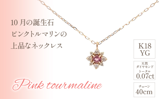 K18バースデーネックレス ピンクトルマリン 10月 管理番号254990 ×1本 218-045