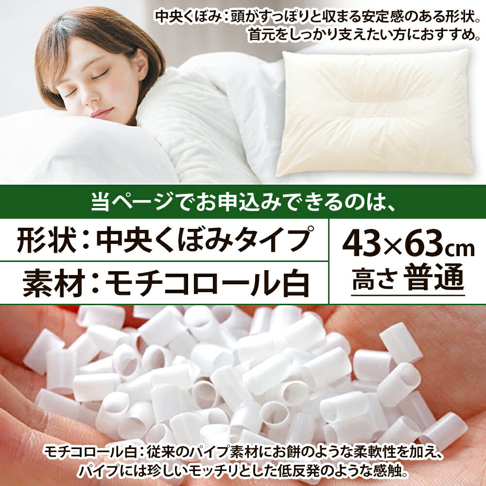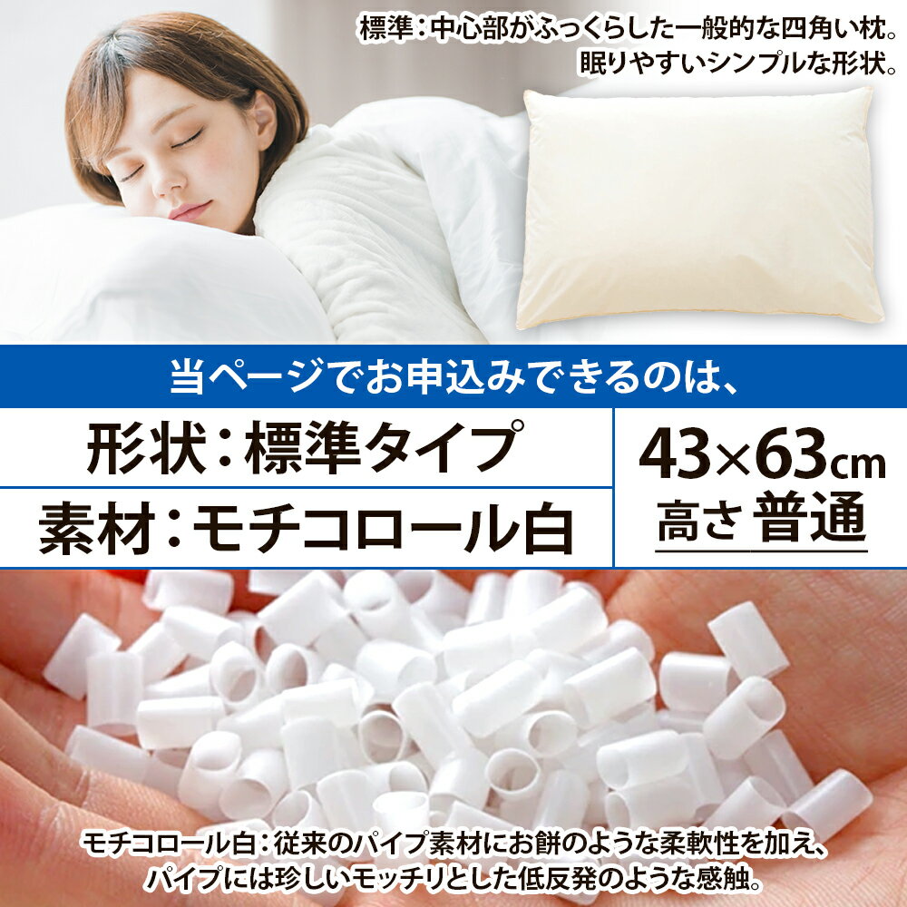 - 【ふるさと納税】 セレクト枕モチコロール白 標準タイプ 中央くぼみタイプ 高さ普通 (43×63cm) 枕 標準 普通 手作り 日本製 使いやすい モチモチ もちもち 清潔 眠り 睡眠 心地よい 熟睡 快適 千葉県 我孫子市