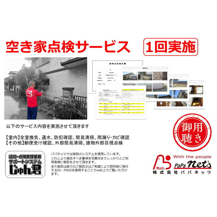 - 【ふるさと納税】越谷市内 空き家点検サービス【1回実施】利用券 / サービス 全室換気 通水 防犯確認 簡易清掃 雨漏り・カビ確認 郵便受け確認 外部簡易清掃 建物外部目視点検 状況確認 状態確認 代行 調査 写真付 報告 送料無料 埼玉県 No.076