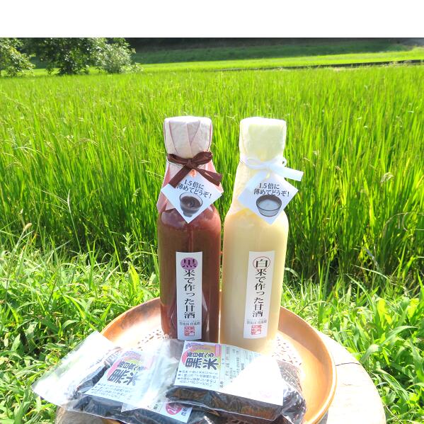 【ふるさと納税】 紅白甘酒( ノンアルコール )& 黒米 セット 玖珠町産 黒米 玄米 もち米 甘酒 あま酒 ノンアルコール アントシアニン 免疫力 栄養素 手作業 自家製 籾すり器 免疫 自然 食生活 料理 健康 体に良い 吸収されやすい 栄養 食べる甘酒 くろあま しろあま