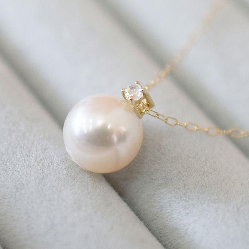 - 【ふるさと納税】あこや真珠 ペンダント ネックレス 8mm - 8.5mm ホワイトピンク 本真珠 誕生石 6月 ムーンストーン 半貴石 選べる 金具素材 K10YG K10WG イエローゴールド ホワイトゴールド 品質保証書 ジュエリーケース 真珠てりクロス お取り寄せ 熊本県 天草市 送料無料