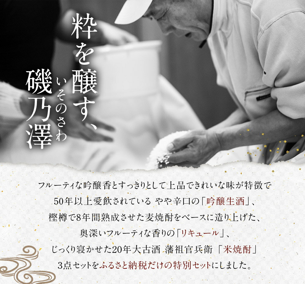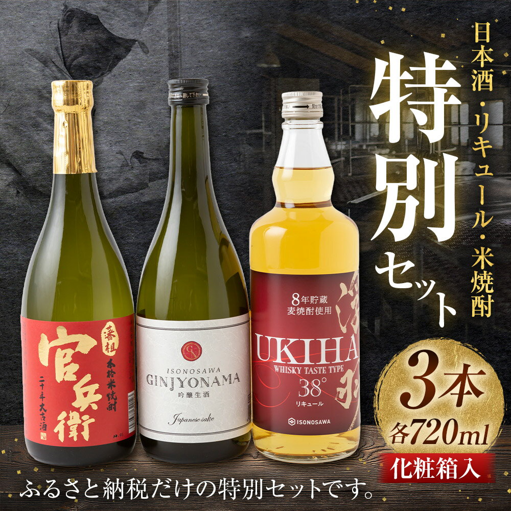 - 【ふるさと納税】いそのさわ ふるさと納税 特別セット 吟醸生酒 リキュール 藩祖官兵衛 米焼酎 焼酎 セット 詰め合わせ お酒 酒 麦焼酎 贈答用 プレゼント 贈り物 アルコール 送料無料 福岡県 うきは市