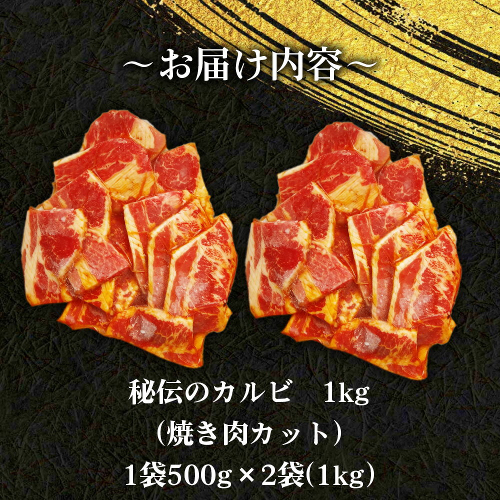 【ふるさと納税】秘伝のカルビ 焼肉カット 1kg / 牛肉 牛 牛バラ 味付き 厚切り スリット加工 柔かい カット済み おつまみ おかず 惣菜 時短 便利 簡単 おいしい 秘伝のタレ 送料無料 愛知県 No.275