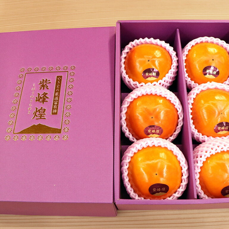 - 【ふるさと納税】 【石岡セレクト認証品】 紫峰煌 6玉 富有柿 柿 かき 富有カキ 約 1.8kg 数量限定 果物 フルーツ くだもの 秋 旬 高級 贈答用 ギフト しほうのきらめき 希少 品種 11月 12月 発送 産地直送 農家直送 茨城県 石岡市 送料無料 (A21-006)