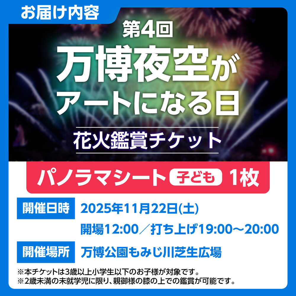 【ふるさと納税】第4回 万博夜空がアートになる日 花火鑑賞チケット パノラマシート(子供) 体験 チケット イベント イベントチケット 予約 シート 花火 花火大会 万博 観覧席 花火鑑賞 パノラマ 子ども おすすめ 大阪 高槻 大阪府高槻市/万博花火プロジェクト[AOBL009]