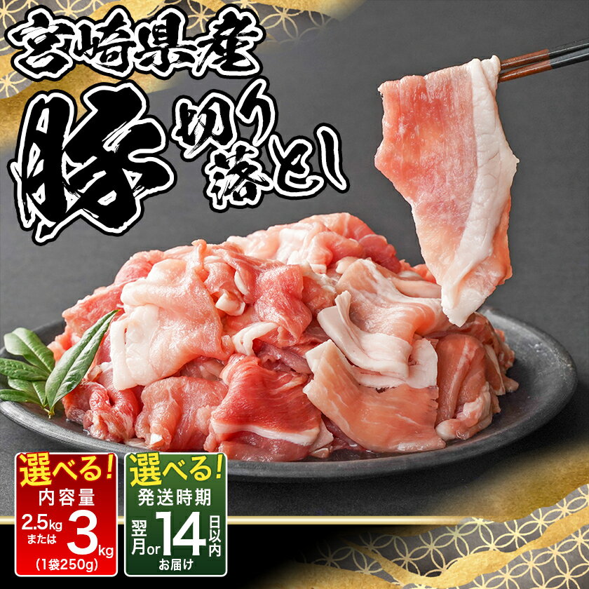 【ふるさと納税】【内容量&発送時期が選べる!】宮崎県産豚切り落とし(真空) - 豚肉 切落とし 小分け 真空パック 選べる内容量 2.5kg/3kg 国産 ぶた 豚汁/お好み焼き/肉野菜炒め 送料無料 SKU-8405 【宮崎県都城市は2年連続ふるさと納税日本一!】