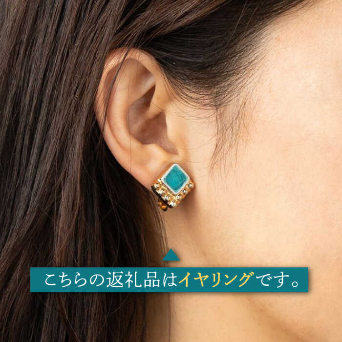 - 【ふるさと納税】【美濃焼】 レトロ イヤリング ターコイズ×金 【七窯社】アクセサリー 耳飾り 装飾品 [TAP063]