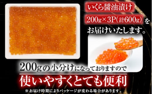 B-14012【年内配送可○】 <計600g>いくら醤油漬け(鮭卵)200g×3P