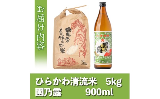 s703 ひらかわ 清流米・焼酎セット(清流米 5kg・園乃露 900ml×1本) 米 焼酎 軸屋酒造 植園酒造 鹿児島 国産 九州産 白米 精米 お米 こめ コメ ごはん ご飯 芋焼酎 アルコール お酒 セット 【ひらかわ屋】