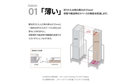 - NOMUDA スチールタイプ 天板:PW色(ホワイト) 脚:フランネルグレー色〈オフィス家具 折りたたみテーブル 省スペース 軽い 軽量 インテリア 稲葉製作所 イナバ 国産 机 事務 家具 オフィス テーブル 〉