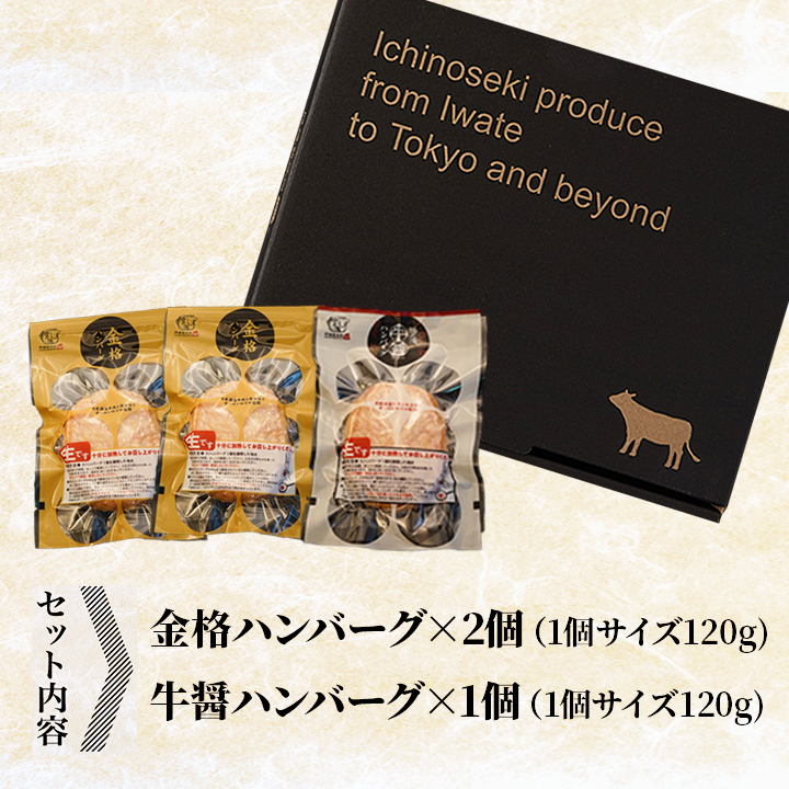 - 《格之進》定番ハンバーグ 2種食べ比べセット【金格ハンバーグ2個・牛醤ハンバーグ1個】